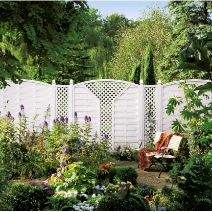 Sichtschutzzaun Element Longlife Romo V-Gitter Weiß 180 Cm X 180/196 Cm