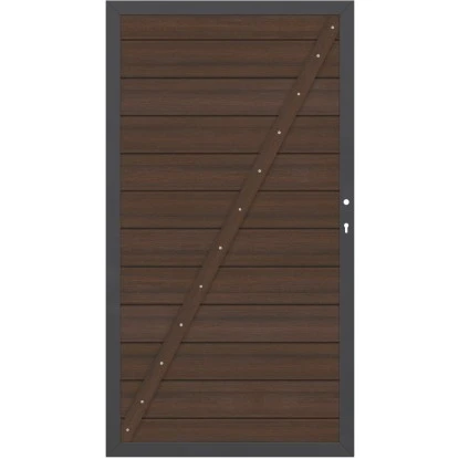 Beim robusten Sichtschutzzaun Tor System Platinum sind 12 Profile in einem umlaufenden Metallrahmen fixiert. Zusätzliche Stabilität gewährt die rückseitige Diagonalverstrebung. Verwenden Sie zur Montage die Universal-Torpfosten: Art. 2228120 Silber oder Art. 5507173 Anthrazit.