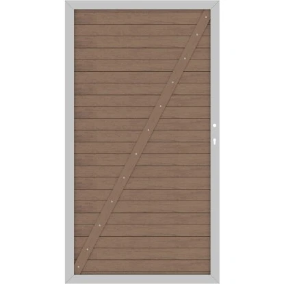 Sichtschutzzaun Tor System WPC Classic Mandel/Silber DIN Links 98 Cm X 180 Cm