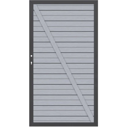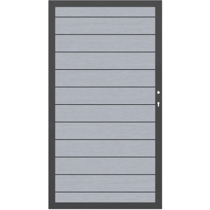 Beim robusten Sichtschutzzaun Tor System WPC sind 12 Profile in dem umlaufenden Metallrahmen fixiert. Zusätzliche Stabilität gewährt die rückseitige Diagonalverstrebung. Verwenden Sie zur Montage die Universal-Torpfosten: Art. 2228120 Silber oder Art. 5507173 Anthrazit.
