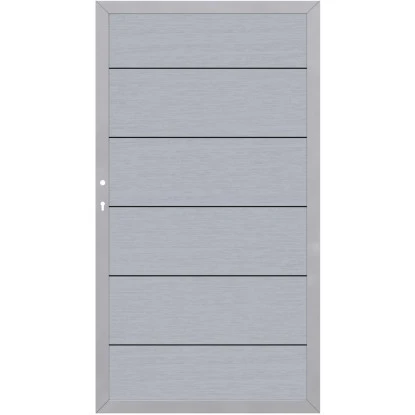 Beim robusten Sichtschutzzaun Tor System WPC XL sind 6 Profile in einem umlaufenden Metallrahmen fixiert. Zusätzliche Stabilität gewährt die rückseitige Diagonalverstrebung. Verwenden Sie zur Montage die Universal-Torpfosten: Art. 2228120 Silber oder Art. 5507173 Anthrazit.