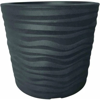 Das Pflanzgefäß verfügt über eine 3D-Wellenoberfläche, wodurch eine variierende Optik je nach Lichteinfall und Schattenwurf entsteht. Darüber hinaus ist das Pflanzgefäß witterungs- und UV-beständig und für den In- und Outdoorbereich geeignet.