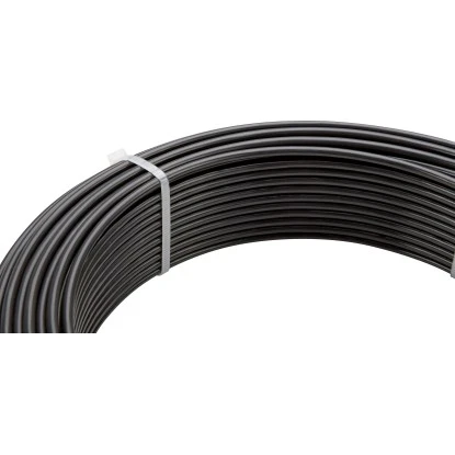 Gefertigt ist der hochwertige Draht aus verzinktem Stahl, das mit einem schützenden Kunststoffmantel in der Farbe Anthrazit ausgerüstet ist. Diese Ausführung bewirkt eine hohe Witterungsbeständigkeit und eine lange Lebensdauer. Der Spanndraht ist lose aufgewickelt und besitzt eine Länge von 55 m. Durch seine Stärke von 3,8 mm stellt er Ihnen eine hohe Zugfestigkeit zur Verfügung.