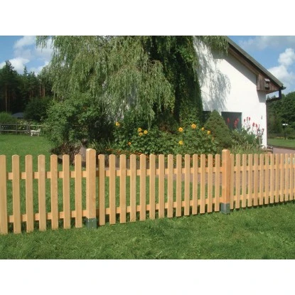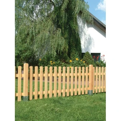Der Staketenzaun Norki im Farbton Natur UV-lasiert besteht aus 14 Latten – Stärke 25 mm x 75 mm und 2 Riegeln – Stärke 30 mm x 75 mm. Latten und Riegel sind durch ihre Form konstruktiv geschützt, da sich kein Stauwasser auf dem Holz bilden kann. Staketenzäune sind zeitlos, elegant und einfach zu montieren. Alle Zaunfelder und Tore sind handwerklich hochwertig verarbeitet und mit rostfreien Rillennägeln befestigt.