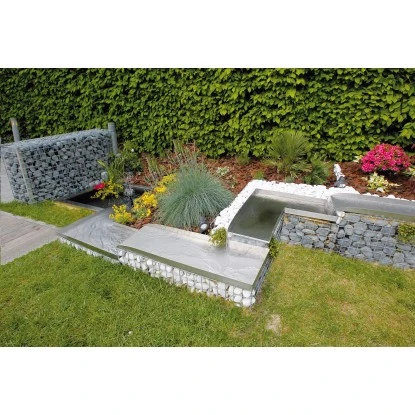 Wolga – Eine Range von Bachläufen aus Edelstahl. Moderne gerade Form. Die verschiedenen Modelle sind beliebig untereinander zu kombinieren. Das System bietet tolle Möglichkeiten bei der Gestaltung. Für einen Bachlauf mit 3 Elementen der Wolga Serie benötigen Sie nur ein 150 Liter Becken und eine Pumpe zwischen 1500 und 2000 l/h, z.B. die Xtra 1600.