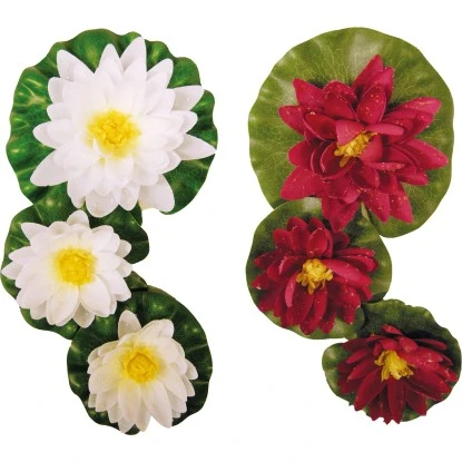 Das Ubbink Dekorseerosenset besteht aus je einer 14 cm und je 2 9,5 cm Rosen in Weiß und Rot.
