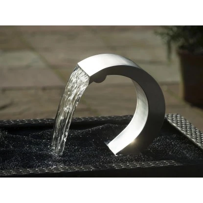 Mit dem Ubbink Design Wasserfall setzen Sie Akzente. Oft ist weniger mehr, egal ob am Gartenteich oder am Pool installiert, ein Blickfang sind die Objekte in jedem Fall. Dieser Wasserfall Mamba S LED ist ein Edelstahl-Wasserfall mit LED Beleuchtung am Wasseraustritt inklusive Anschlussmaterial und geeignet für Teichpumpen von 6.000 l/h Umwälzleistung. Am Pool wird der Wasserfall in das bestehende Pumpen-Filter-System integriert.