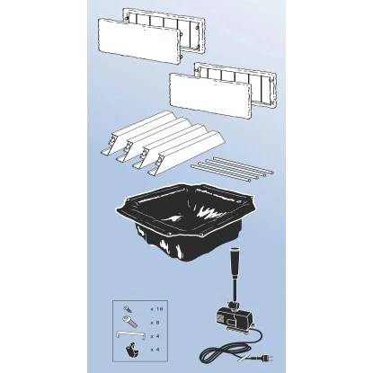 Holen Sie sich den Gartenteich mit dem Ubbink Terrassenteich Acqua Arte Amora auf die Terrasse. Moderner Es handelt sich um einen Terrassenteich mit grau-beigefarbener Umrandung aus Kunststoffgeflecht und mit dekorativem umlaufendem Rand aus Aluminium. Innen wird der Teich mit Teichfolie ausgekleidet. Die einfach zu montierenden Teile sind flach und somit leicht zu transportieren sowie platzsparend lagerbar. Die passende Teichpumpe mit Düsenaufsatz wird mitgeliefert.