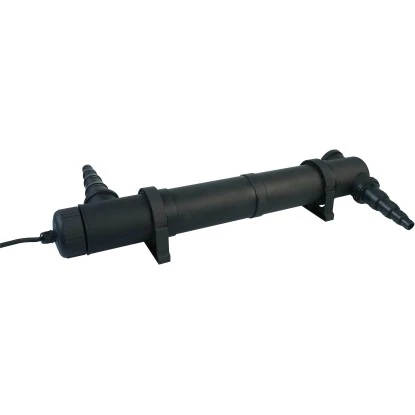 UV-C Geräte sorgen für klares Wasser im Gartenteich, indem sie durch ihre ultraviolette Strahlung Keime abtöten, die für die unerwünschte Algenbildung verantwortlich sind. In der Regel werden sie in Kombination mit Teichfiltern verwendet. Die verklumpten Algen werden dann dort aufgefangen. Die bestrahlten Mikroorganismen verlieren ihre Zellteilungsfähigkeit und können sich nicht mehr vermehren. Die Strahlung ist nicht schädlich für Fische und Pflanzen. Durch ein Sichtfenster ist jederzeit eine Funktionskontrolle möglich.