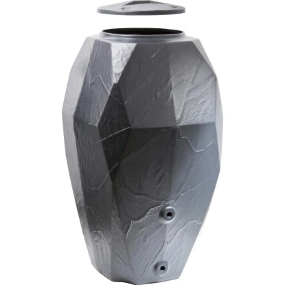 Die Waterform Regentonne Canyon 310 l Anthrazit ist eine großartige Möglichkeit, Regenwasser aufzufangen. Der Behälter hat eine obere Öffnung mit einem Deckel und zwei Gewindebohrungen für einen Wasserhahn oder einen Gartenschlauch mit einer Schnellkupplung. Die Regentonne erfüllt nicht nur ihre praktische Rolle als Wasserbehälter, sondern ist auch eine interessante Dekoration für Ihren Garten. Seine Form ähnelt einer antiken Amphore, und seine Farbe und Struktur imitieren Stein.