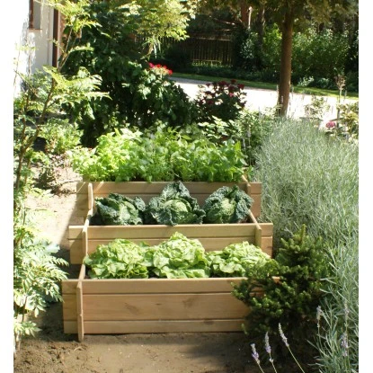 Ob Salat, Obst oder Kräuter – das Hochbeet bietet auf seinen 3 Ebenen ausreichend Platz für eine individuelle Bepflanzung ganz nach Ihren Wünschen und Vorstellungen. Das Hochbeet aus Kiefernholz fügt sich dank seiner naturbelassenen Optik und Farbe ganz natürlich in seine Umgebung ein.