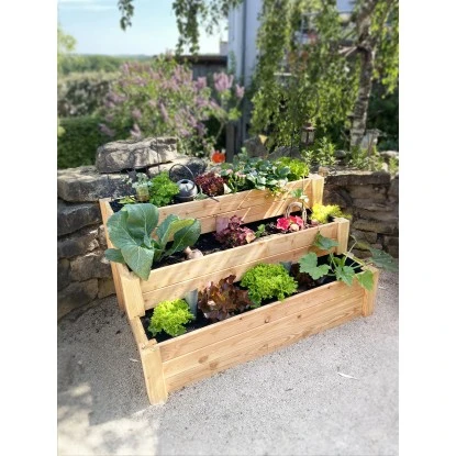 Auf einer Länge von 1,20 m bietet das Hochbeet ausreichend Platz für eine individuelle Bepflanzung ganz nach Ihren Wünschen und Vorstellungen. Das Westmann Hochbeet benötigt nur wenig Platz und ist daher bestens für ein Gärtnern auf dem eigenen Balkon geeignet – ideal auch für kleine Balkone und Terrassen. Weiterer Vorteil: Das Treppenhochbeet ermöglicht ein bequemes Gärtnern in angenehmer Arbeitshöhe. Diese Höhe hält zudem Schnecken und Unkraut fern. Darüber hinaus ist das Beet nicht nur ein dekoratives Element, sondern kann auch als praktische Begrenzung für Garten und Eingangsbereich eingesetzt werden.